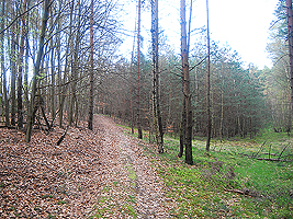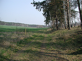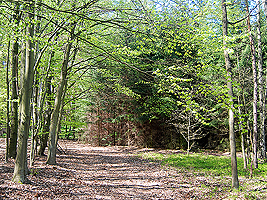 Der im Bild dargestellte Hügel hat eine Höhe von 101,1 m ü.NN und ist damit fast so hoch wie der Dachsberg mit 103,5 m üNN. Vor diesem Hügel biegen Sie rechts ab und folgen dem Waldweg.
