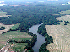 Auf dem Luftbild kann man das ausgedehnte Waldgebiet gut erkennen. Hier kann man ganz unterschiedlichen Baumbestand sehen.