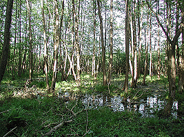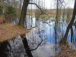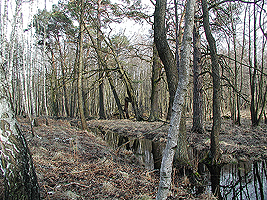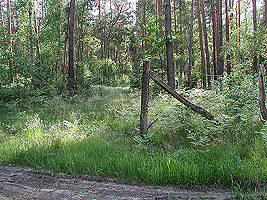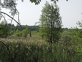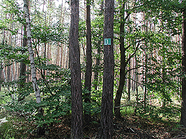 Sie wandern bis zu einer Wegabzweigung rechts. An einem Baum ist ein Schild mit einer Nummer 1 angenagelt. An diesen Weg biegen Sie rechts ein. Nach etwa 100 m müssen Sie wieder links abbiegen. Sie können natürlich von dieser Stelle aus noch einen Abstecher zum Moor machen. |