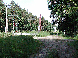 Hier an dieser Stelle reicht das Glieningmoor bis an die Bahnstrecke nach Frankfurt. Im Sommer und Herbst ist der westliche Uferbereich komplett mit Farnen und andere einjährigen Pflanzen zugewachsen. Dann ist die Wanderung am Moor ein echter Höllentripp. Der Wanderer sollte deshalb in der Zeit bis zur Bahnschranke an der Eisenbahnstrecke weiter wandern. |