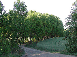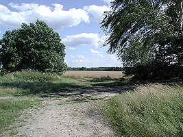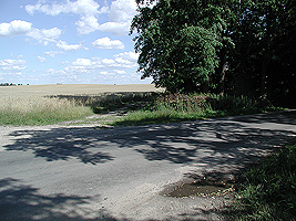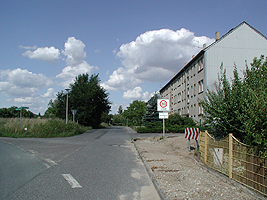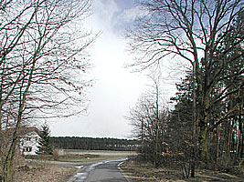 Am Ortsausgang erreichen Sie die Verbindungsstraße von der B168 nach Saarow. Die Straße überqueren Sie leicht rechts. Auf der anderen Straßenseite finden Sie einen Feldweg.