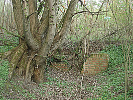 Nach der Schranke folgen Sie dem Waldweg bis zur Bernhardi Brücke. Kurz vor der Brücke mündet der Weg in einem leichten Linksbogen in einen breiteren Waldweg. An der Bernhardi-Brücke lassen sich nur noch Überreste erahnen. Viel sehenswerter ist der am Graben befindliche Baum. Die Quelle und der kleine Teich haben auch schon mal bessere Zeiten erlebt.