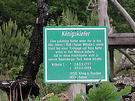 Sie wandern nicht direkt Richtung Norden weiter, sondern leicht rechts den Abzweig nach Richtung Norden. Nach etwa 800 m erreichen Sie die Überreste der Königskiefer. An dieser Stelle biegen Sie nach rechts in Richtung Schutzwald ab.