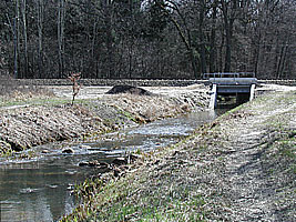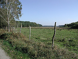 Sie folgen dem Weg bis zur Mündung des Hauptgrabens. Dort befindet sich eine kleine Brücke, die Sie überqueren.