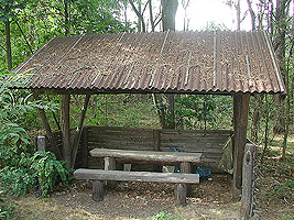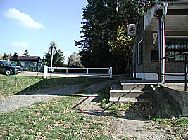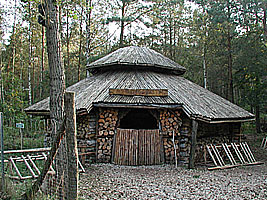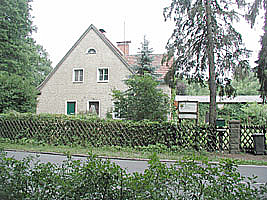 Sie überqueren nach links die Straße am Forsthaus. An dem Forsthaus kann man die Holzhütte für Feiern mieten.