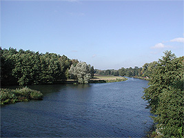 Sie bleiben vor der Fischwallbrücke und schwenken nach rechts. Danach überqueren Sie den Bahndamm. Vorsicht! Vergewissern Sie sich ob kein Zug kommt. Hinter dem Bahndamm befindet sich eine Brücke über den Hauptgraben. An dieser Stelle beginnt ein schmaler Weg zum Eichenhain, dem Sie folgen.