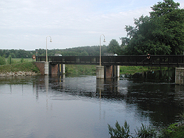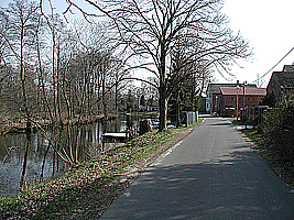 Rechts befindet sich eine Holzbrücke über den Hauptgraben. Am Ortsausgang überqueren Sie die Brücke über den Hauptgraben.
