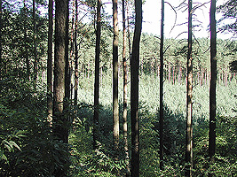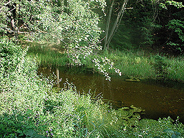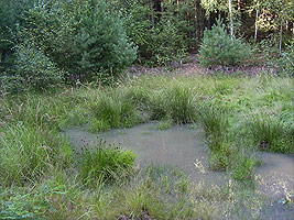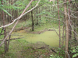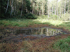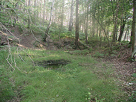 Hier befindet sich einer Endmoränensenke. In der Senke befindet sich eine wasseführende Schicht die mehererTeiche speist. Diese kleine Teiche waren früher einmal angestaut.