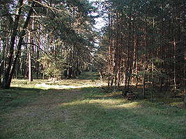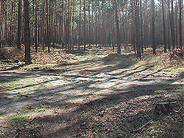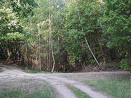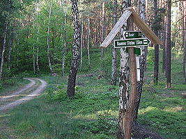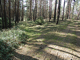 Sie wandern den Weg geradeaus weiter. Dabei überqueren Sie die ehemalige Kopfsteinpflasterstraße von Fürstenwalde nach Sauen. Etwa 700 m weiter müssen Sie links in einen anderen Waldweg abbiegen.
