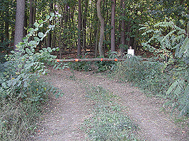 Wenn Sie links zu dieser Schranke abgebogen sind, folgen Sie dem Waldweg geradeaus. An einer Stelle gabelt sich der Weg leicht. Sie halten sich an der Stelle rechts.