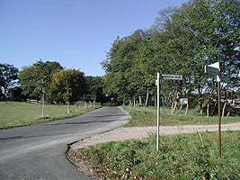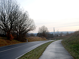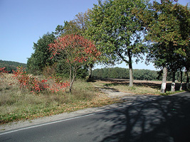 An der Gaststätte verlassen Sie wieder diesen Ort. Wandern bis zur Straße vor und biegen nach rechts in Richtung Roter Krug ab.