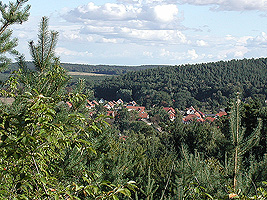 Den Weg verlassen Sie nicht mehr bis Streitberg. Sie passieren einen Bachlauf und eine Wochenendsiedlung. Streitberg erreichen Sie an der Zufahrtstraße von Langewahl. Sie gehen links weiter auf der Asphalt-Straße.