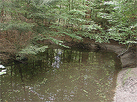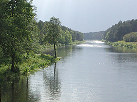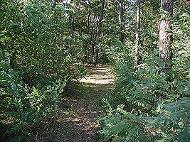 Unterhalb einer kleinen Steigung befindet sich rechts neben dem Weg eine ehemalige Spreeschleife. Vor dem Kanalbau schlängelte sich die Spree in Meandern durch das Urstromtal. Heute haben die meisten dieser ehemaligen Flussschleifen keine Verbindung mehr zum Kanal.