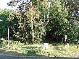 Zurück vom Sendeturm wandern Sie die Straße geradeaus weiter, parallel zu der Senke in der ein Teil des Großen Markgrafensteins nach Berlin abtransportiert wurde. Die Straße macht dann eine Kurve nach links. Sie wandern jedoch geradeaus weiter den letzen Anstieg hinauf zur höchsten Stelle der Rauener Berge.