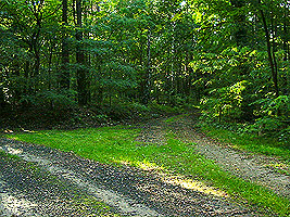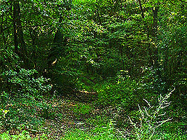 An der Schranke steigen Sie auf in die Lauseberge. Nach etwa 400 m haben Sie schon die höchste Stelle erreicht. Sie halten sich rechts und wandern wieder bergab.