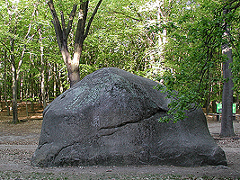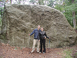 Die Größe der Findlinge kann man eigentlich nur erkennen, wenn ein Mensch vor dem Stein steht. Der Große Markgrafenstein ist von oben gespalten worden. So ist eine richtige Felswand entstanden.