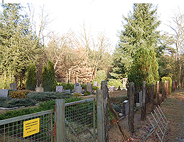 Sie wandern an einem kleine Friedhof vorbei. Wenn man die Hauser von Fürstenwald Süd-West sieht, biegt man auf dem Wanderweg links in Richtung Norden ab.