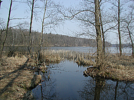 Am See angekommen, sollte man rechts noch einen Abstecher zum Trebuser Graben machen. Sonst wandern Sie jetzt direkt am See weiter.