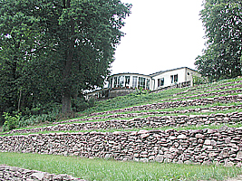 Früher befand sich an dieser Stelle noch ein Aussichtpunkt in Richtung Berlin. Leider ist diese Stelle heute zugewachsen. Sie verlassen den Berg an der Treppe Richtung Norden.