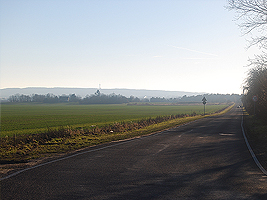 Auf dieser wenig befahrenen Nebenstraße wanden Sie links am Feldrand weiter.