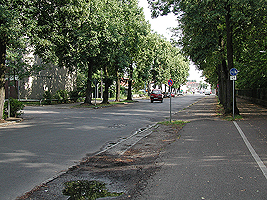 An dem Wohnblock folgen Sie der Straße geradeaus.
