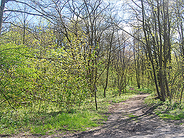Rechts am Hang der Endmoräne wachsen sehr viele Linden und Buchen. Gerade im Frühjahr ist dieser Weg sehr schön und lichtdurchflutet.