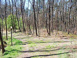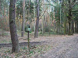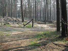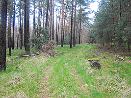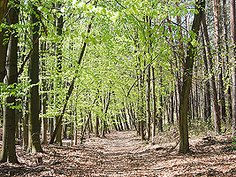 Der im Bild dargestellte Hügel hat eine Höhe von 101,1 m ü.NN und ist damit fast so hoch wie der Dachsberg mit 103,5 m üNN. Vor diesem Hügel biegen Sie rechts ab und folgen dem Waldweg.