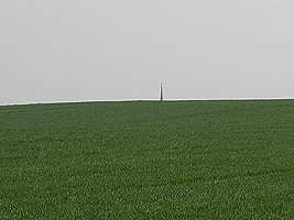 Etwa 500m weiter verlassen Sie den Wald und biegen vor dem Feld nach links ab. Wenige Schritte weiter finden Sie einen weiteren Feldweg auf den Sie nach rechts einbiegen. Hier haben Sie links einen Blick auf eine einzelne Windkraftanlage.