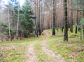 Sie folgen dem Weg fast geradeaus zu einem Kiefernbestand.